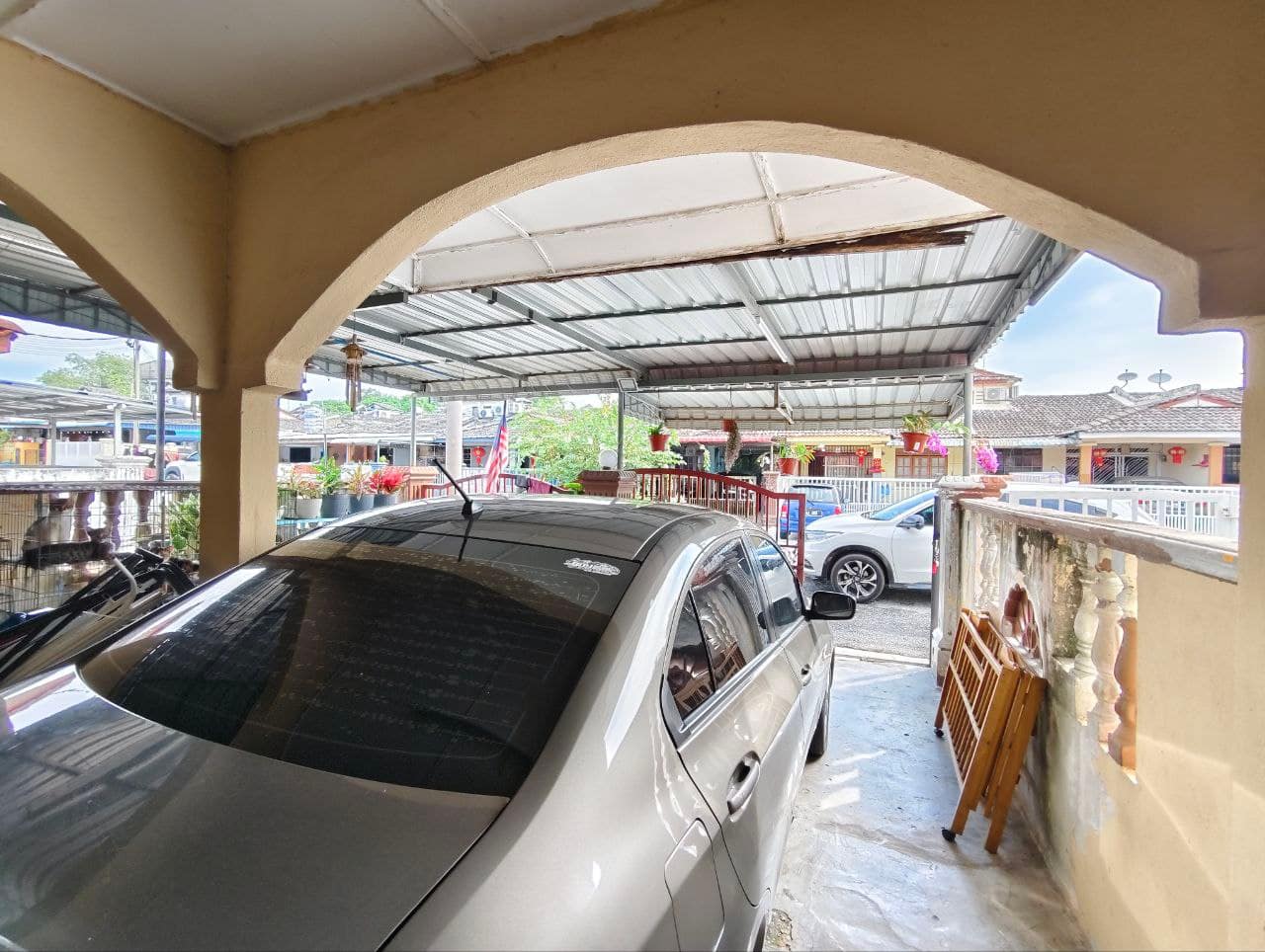 Keluasan Tanah: 1,200 kaki persegi (sqft). Keluasan standard yang mudah dijaga, cukup untuk meletakkan kereta di anjung (porch).